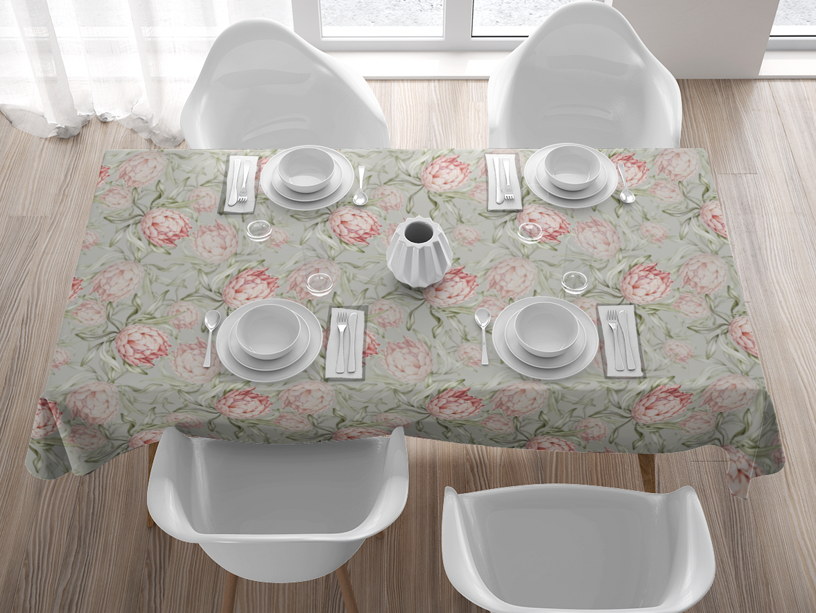 Each tablecloth is printed on 100% polyester which has been coated to make it easy-to-clean with only a damp cloth.